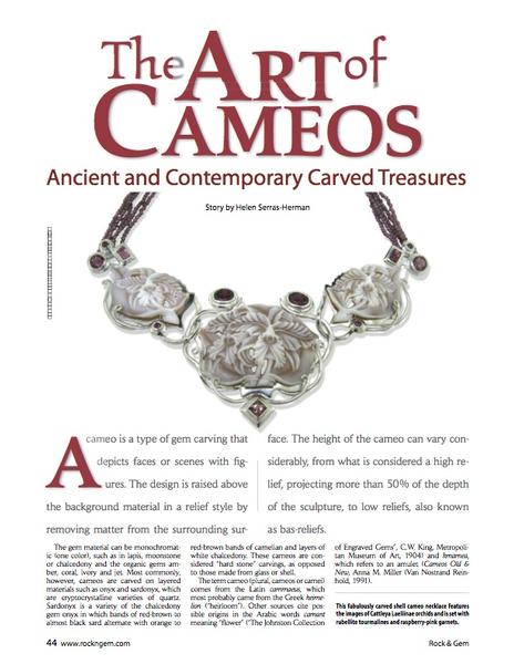 - Rock & Gem Magazine, August 2014 Edition, The Art of Cameos, by Helen Serras-Herman, pages 44-47 www.rockngem.com/ftp/R&G_Aug14/#44