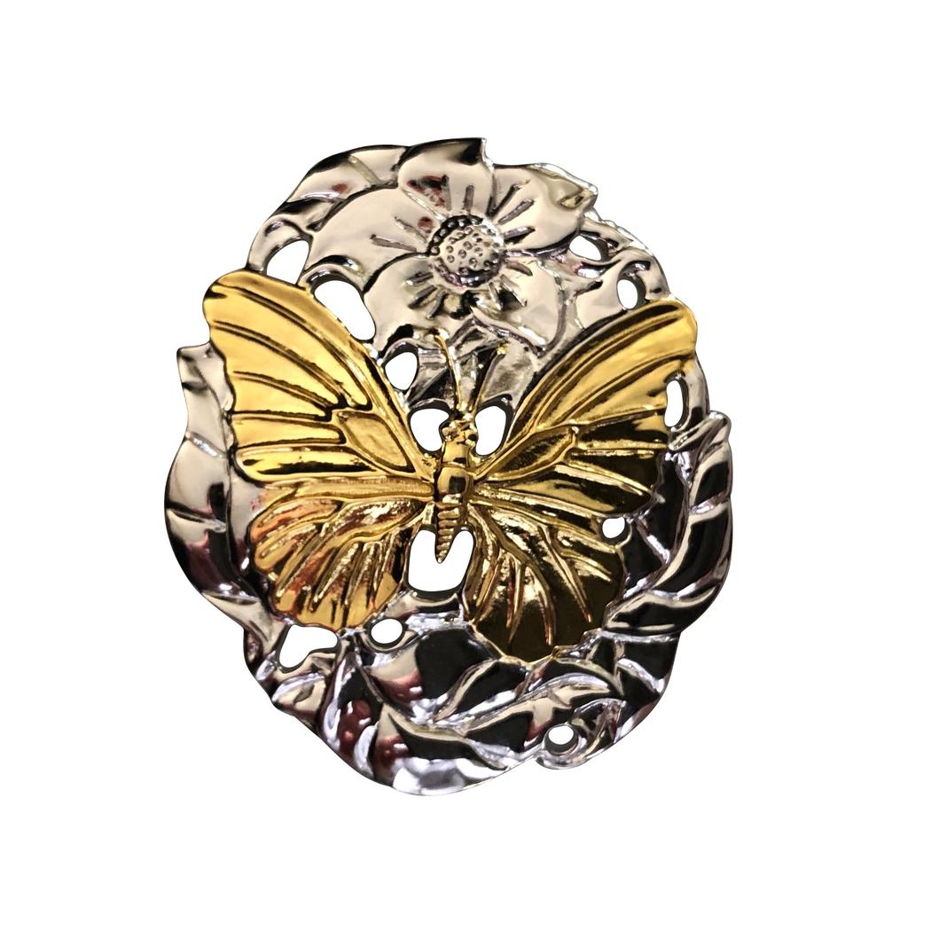 "Blue Butterfly w/flower" 40mm rhodium plated, sterling silver pendant with 18kt gold plating on the butterfly.