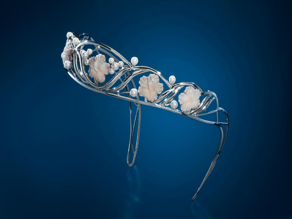 Hibiscus Cameo Tiara w/ Akoya Pearls, 18kt gold