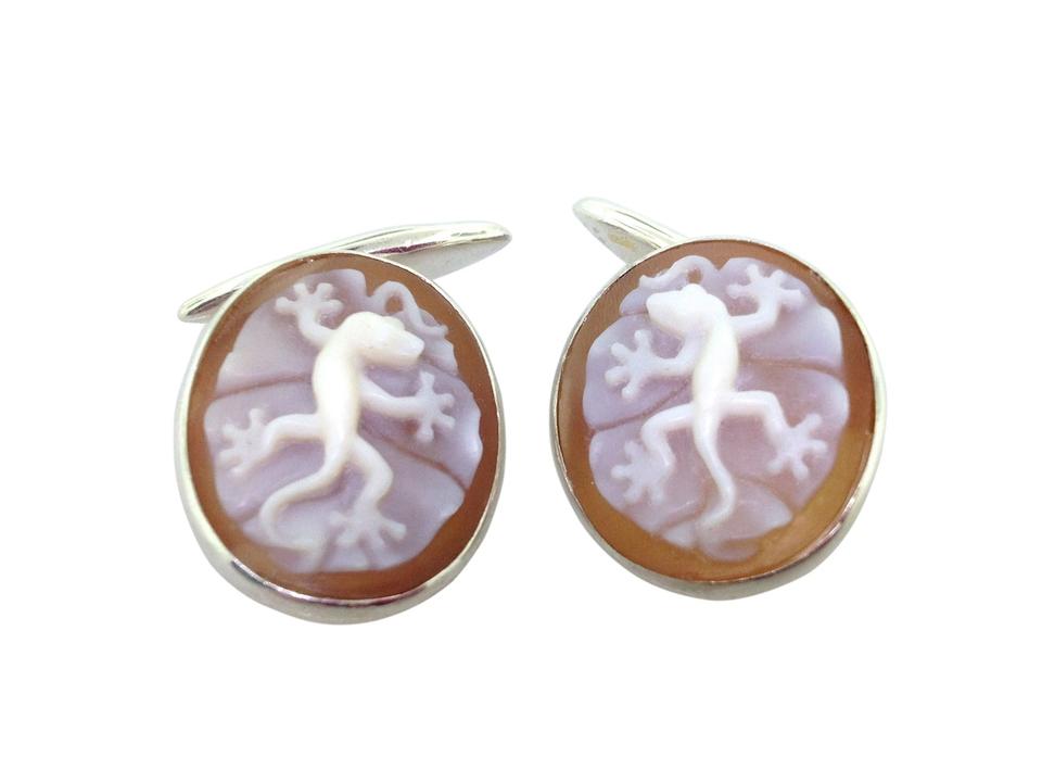 Geckos are cute little critters that are commonly found in Panama everywhere. They love to eat the small insects that are attracted to outside lighting, etc. These gecko cameo cufflinks are set in 950 silver, registry numbers 2186/2187. Sold with a Certificate of Authenticity. Eco-friendly, Fair Trade.