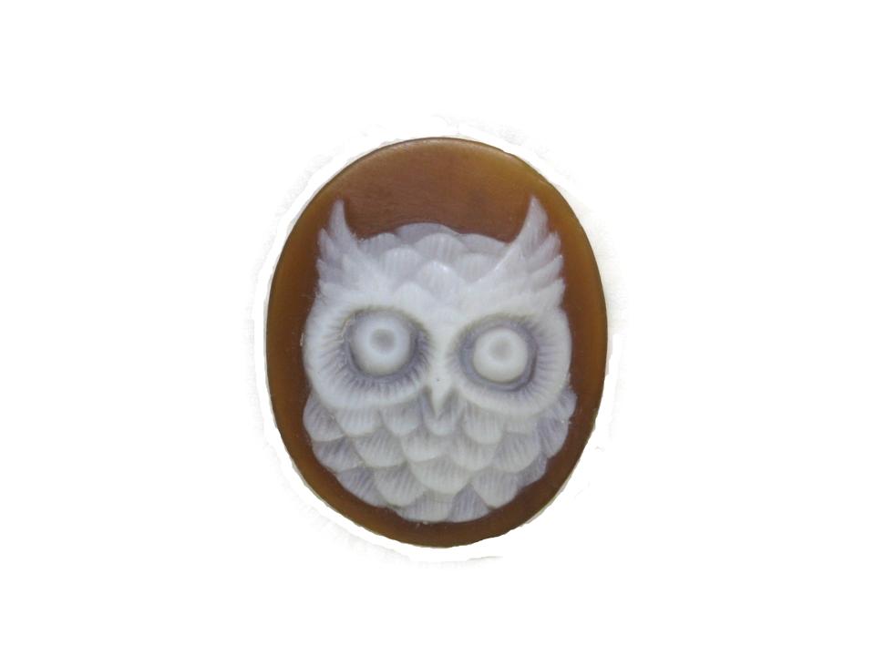 Owl cameo, 23mm oval, artist signed original, hand carved from the Queen's Helmet shell. Registry number #2246. Eco-friendly, Fair Trade. Sold with a Certificate of Authenticity.