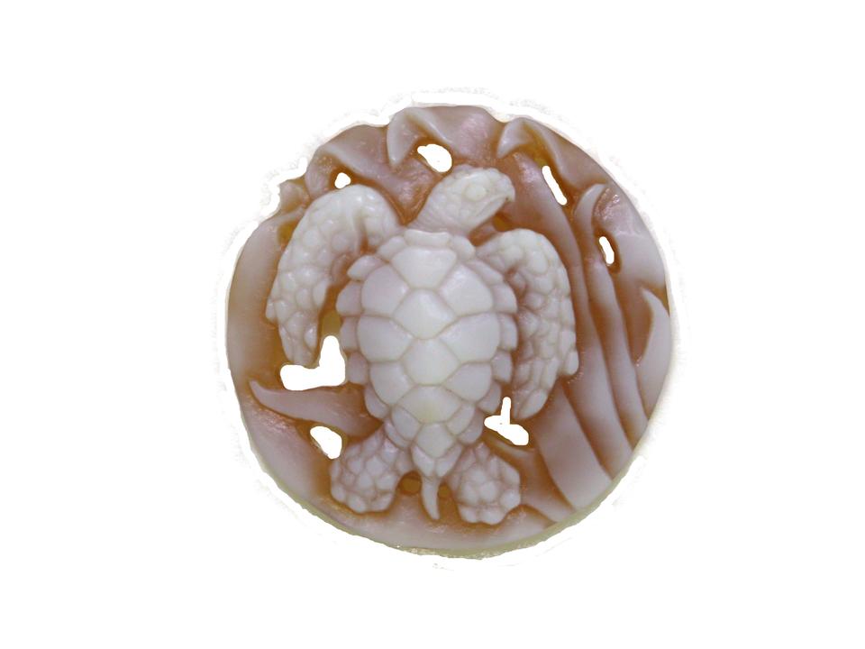 Sea turtle w/grass cameo, 25mm, latticework technique, registry number #2520. Sold with a Certificate of Authenticity. Eco-Friendly, Fair Trade.