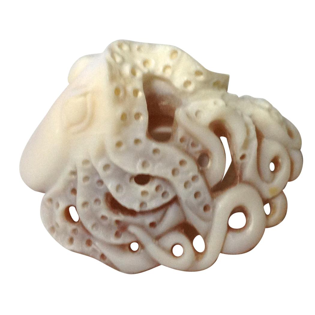 This handcrafted octopus cameo is extraordinary. Made from a supersized "knuckle" of a large Queen's Helmet Shell, it measures 33mm in length and 25mm in height. Registry number #1067. Sold with a Certificate of Authenticity. Eco-friendly, Fair Trade.